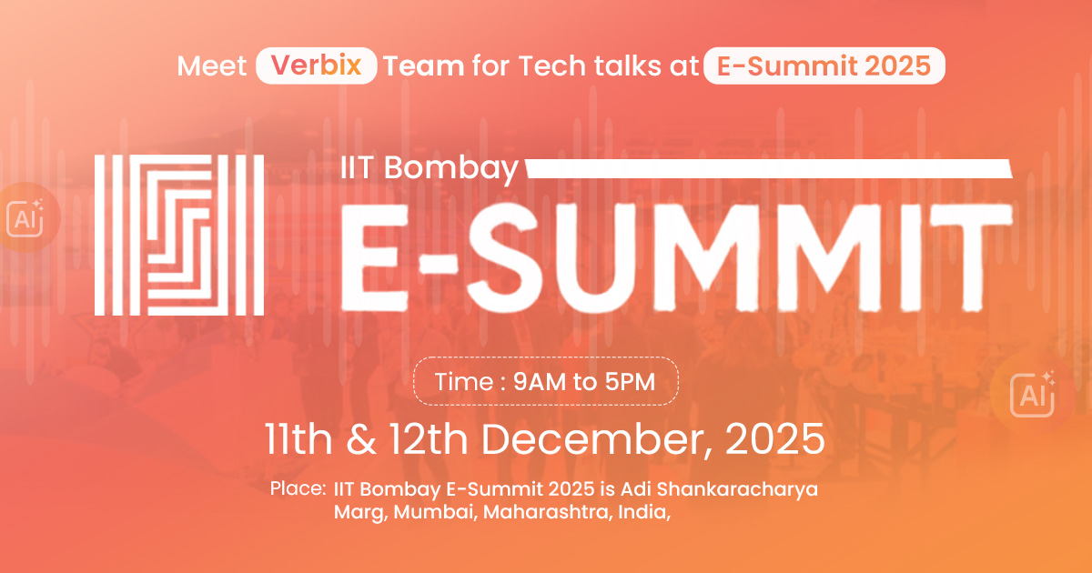 Dates: 11th & 12th December, 2025 Time: 9:00 AM – 5:00 PM Location: IIT Bombay — E-Summit Startup Expo Verbix.AI is proud to announce its participation in the 21st edition…